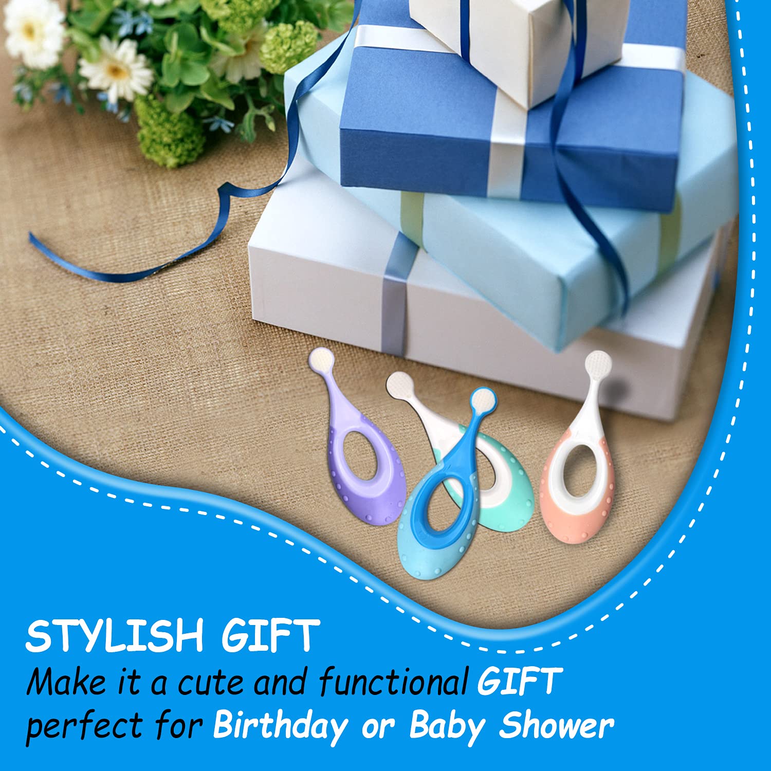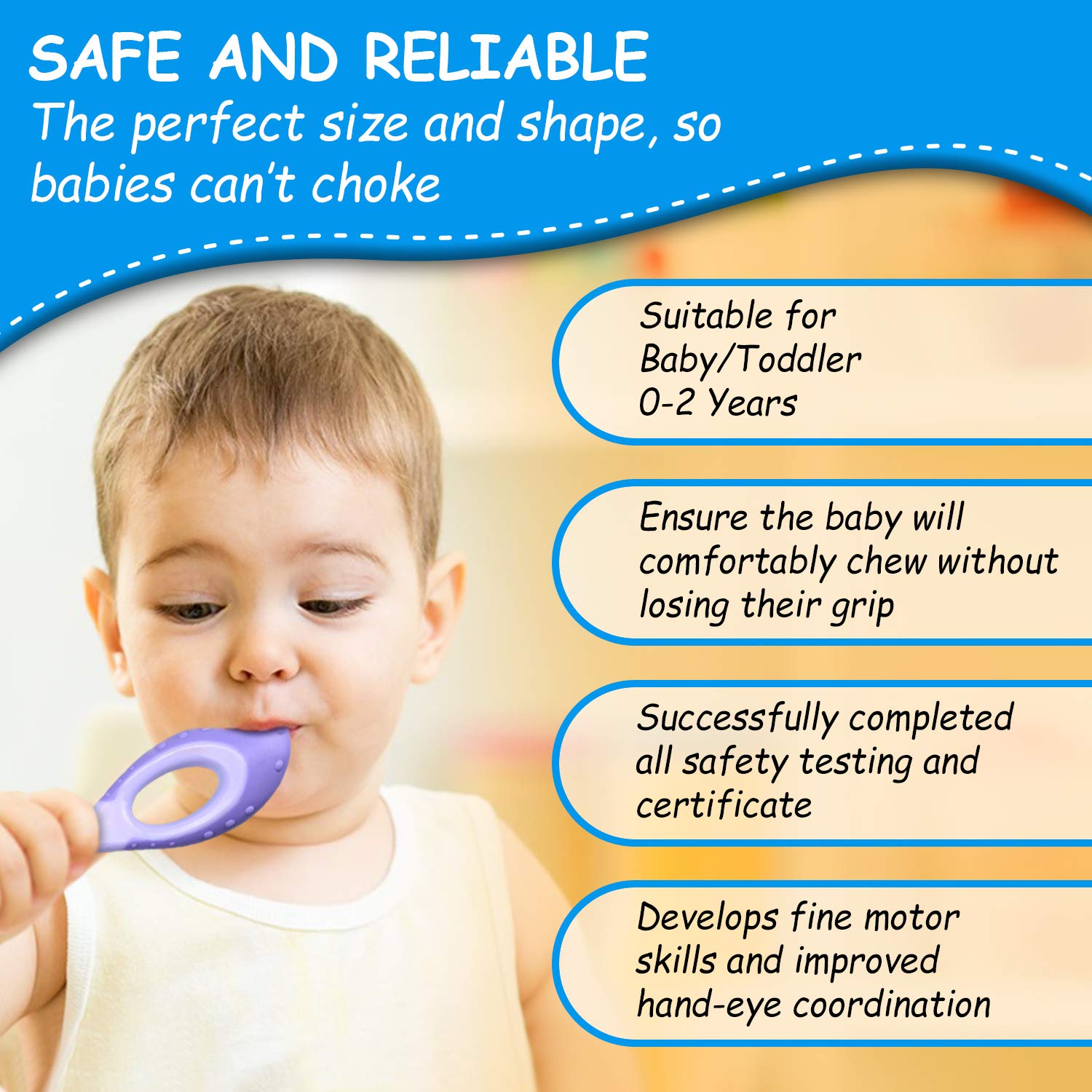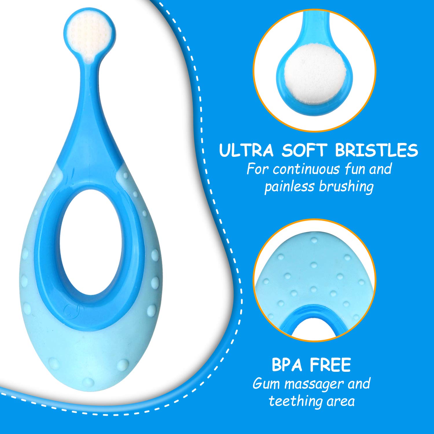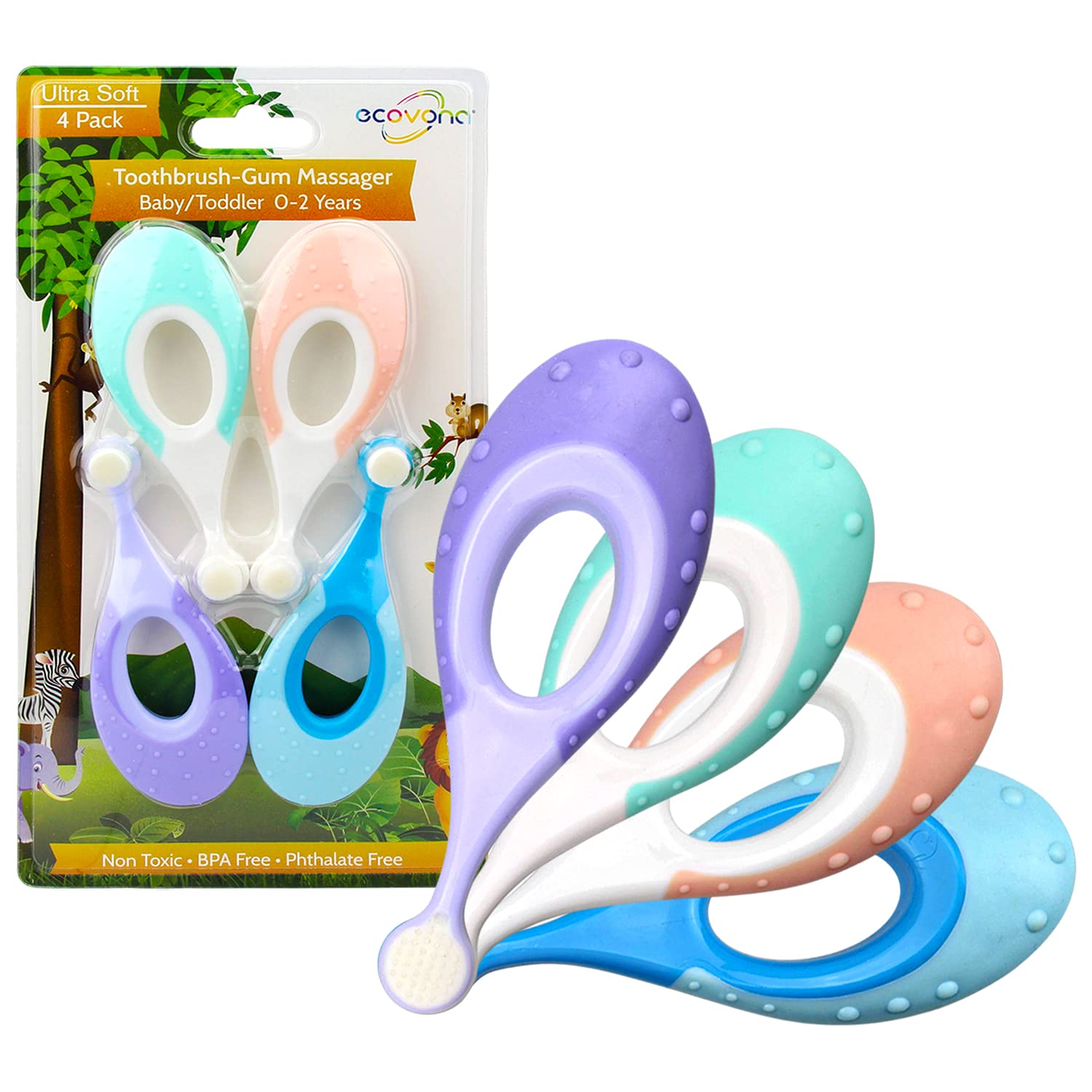 Ecovona Baby Toothbrush & Toddler Toothbrush for Age 0-2 Years Old | Extra Soft Bristle for Baby Teeth & Infant Gums | BPA-Free, Easy-Grip Finger Handle & Teething Pad | Dentist Recommended | 4-Pack