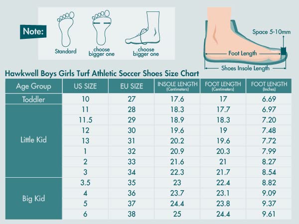 • Kids comfortable soccer shoes are good choices at sports hall, gym, turf field, etc.