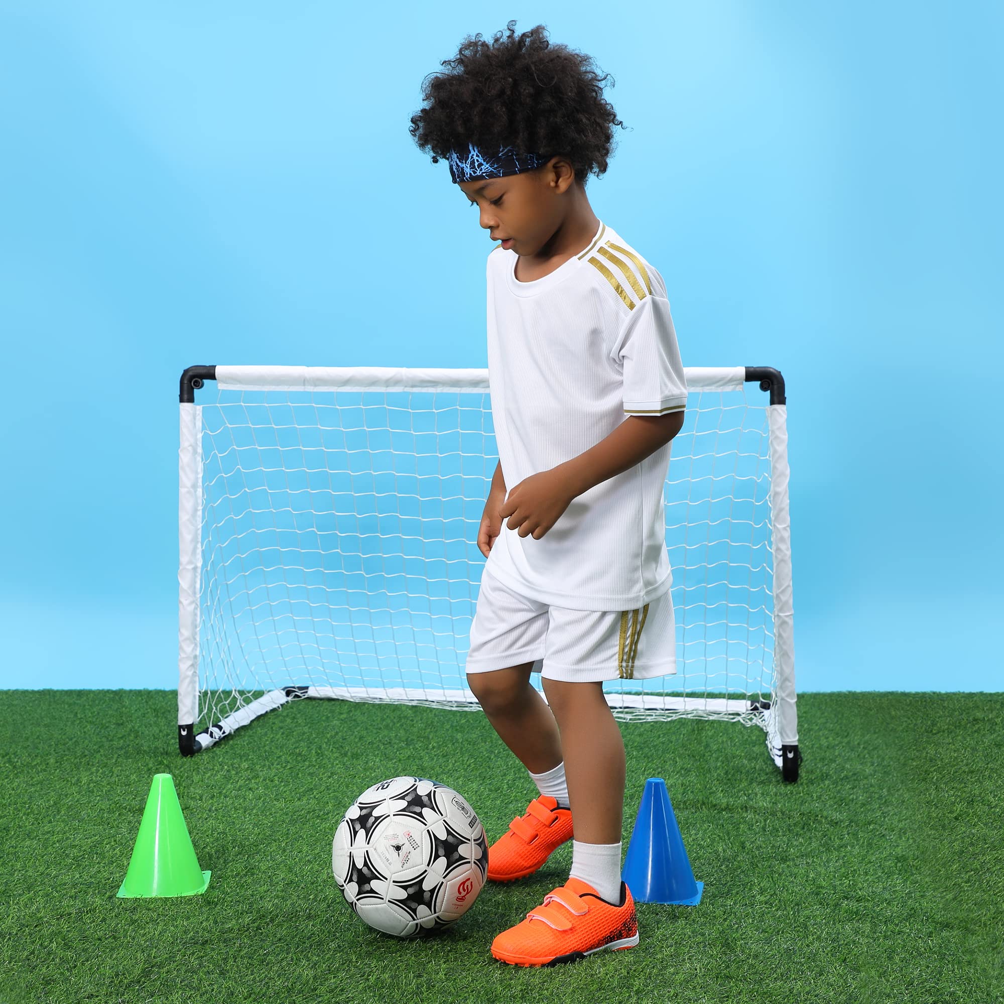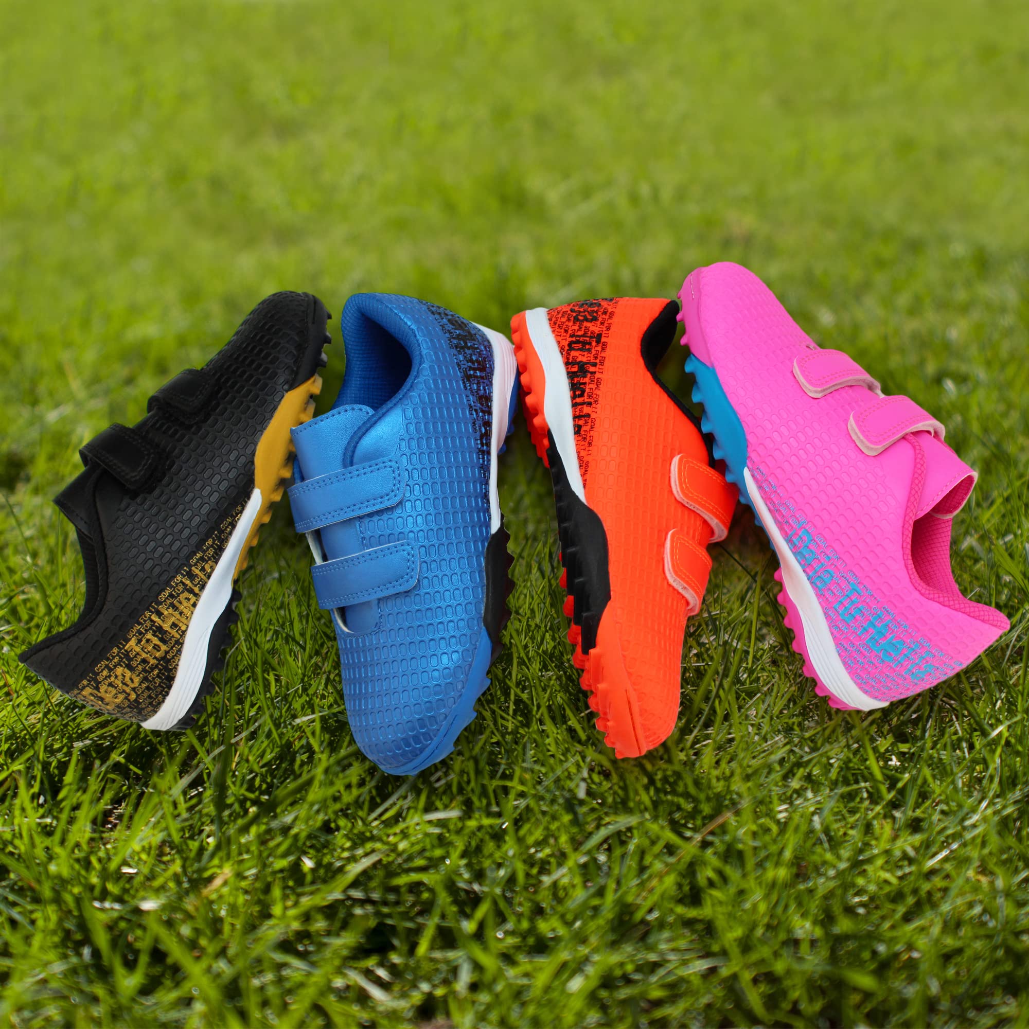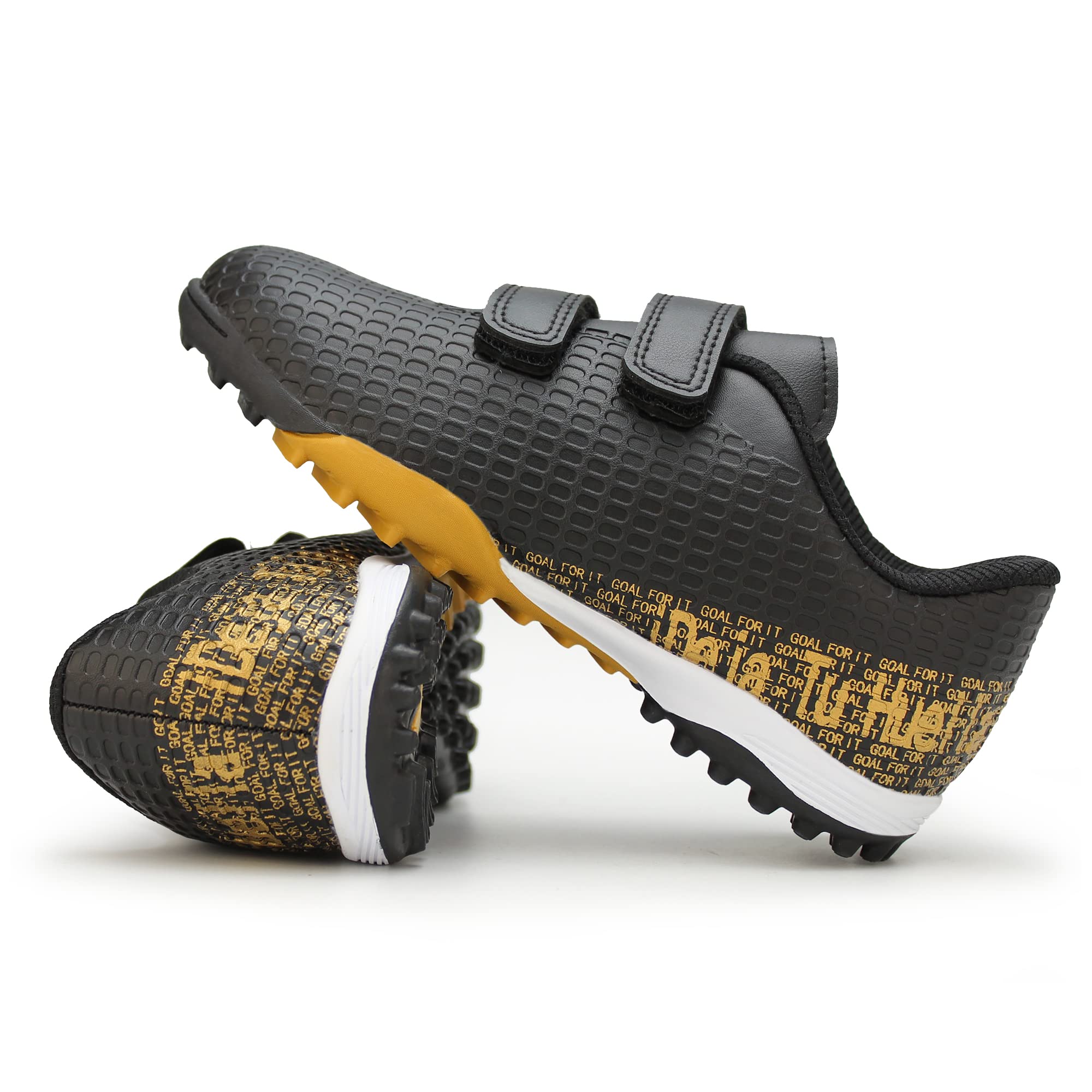 Hawkwell Boys Girls Athletic Turf Soccer Shoes(Toddler/Little Kid/Big Kid), Black PU, 2 M US