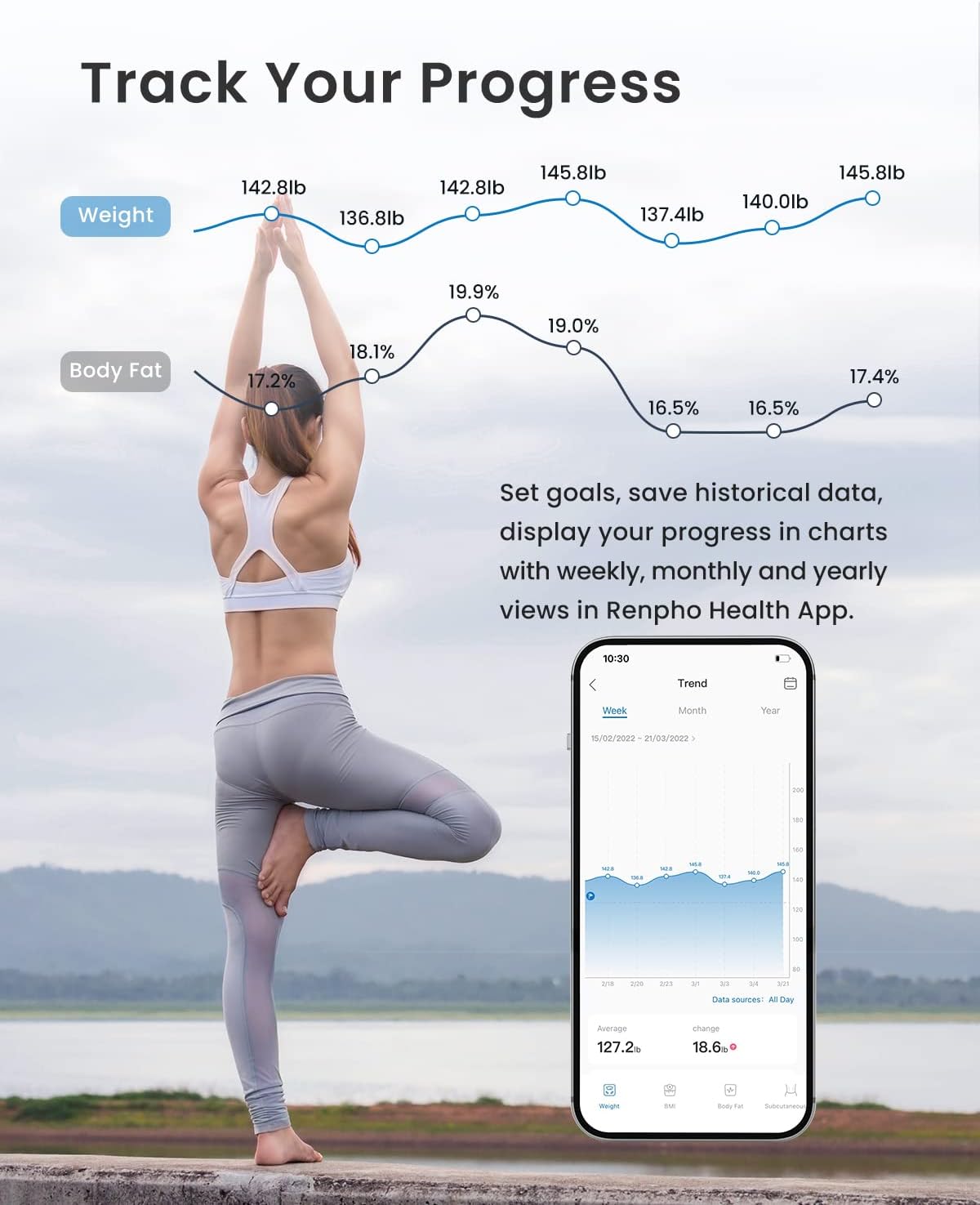 • Track Your Progress with Renpho Health App: Supports unlimited user profiles for tracking individual fitness goals and progress. Pair Renpho Health App with your smartphone, you can easily track progress and gain insights into your health.