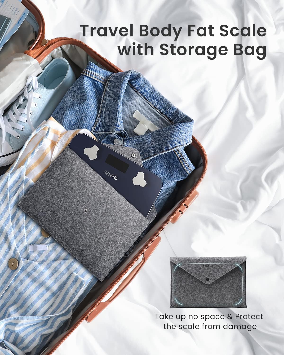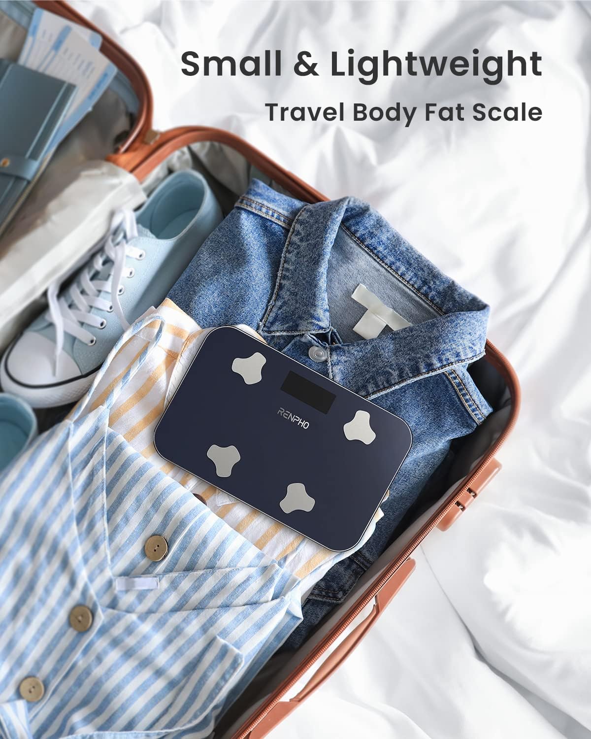 RENPHO Travel Scale for Body Weight, Mini Bathroom Scale for Body Fat, Portable Elis Go Weight Scale for Traveling with Storage Case, 13 Body Composition Analyzer with App, 400 lbs, 11.02" x 7.09"