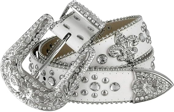 Rhinestone Fashion Western Bling Belt Crystal Studded Design Leather Belt 1-1/2"(38mm) wide