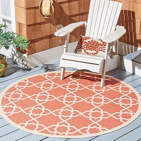 SAFAVIEH Courtyard Collection 6'7" Round Terracotta/Beige CY6032 Indoor/ Outdoor Splashproof Easy Scrubbing Patio Backyard Mudroom Area Rug