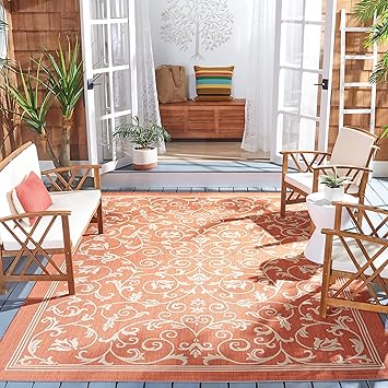 SAFAVIEH Courtyard Collection 6'7" Square Terracotta / Natural CY2098 Scroll Indoor/ Outdoor Waterproof Easy-Cleaning Patio Backyard Mudroom Area-Rug