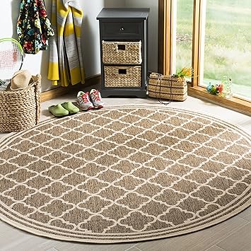 SAFAVIEH Linden Collection 6'7'' Round Beige/Cream LND121D Trellis Indoor/ Outdoor Non-Shedding Easy scrubbing Patio Backyard Porch Deck Mudroom Area-Rug