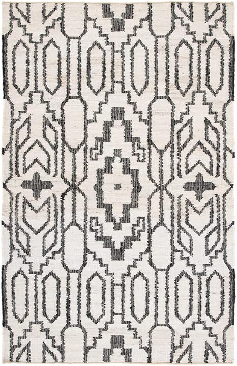 SAFAVIEH Natural Fiber Collection Area Rug - 5' x 8', Ivory & Black, Handmade Jute, Ideal for High Traffic Areas in Living Room, Bedroom (NFB750A)