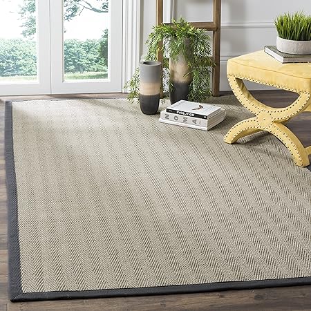 SAFAVIEH Natural Fiber Collection Area Rug - 8' x 10', Grey Brown & Grey, Border Herringbone Sisal Design, Easy Care, Ideal for High Traffic Areas in Living Room, Bedroom (NF444A)