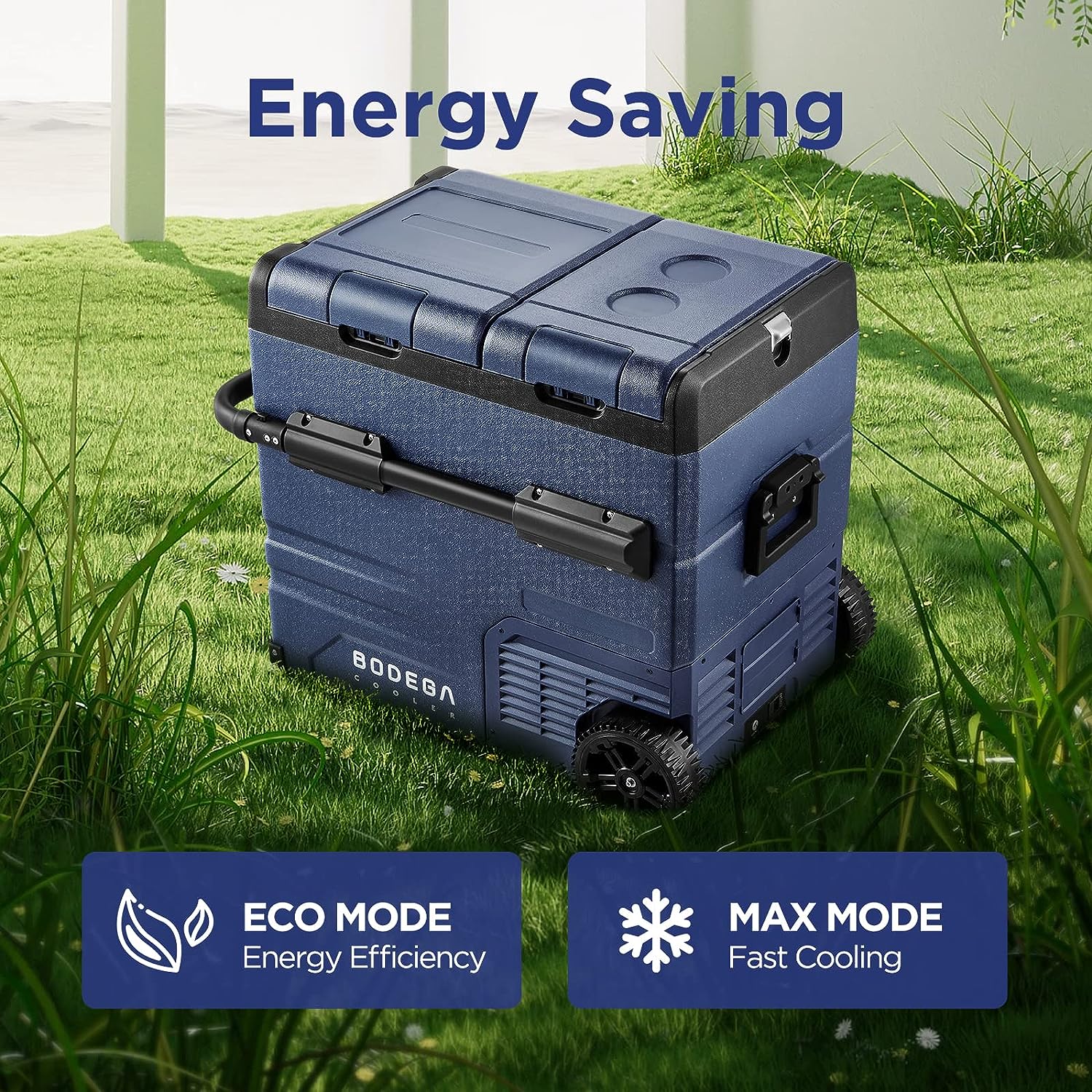 • 👍🥂APP CONTROL & VOLTAGE PROTECTION:Upgraded WiFi connection car refrigerator. BODEGACOOLER car fridge with APP control, you can control the freezer from distance or in car.Intelligent temperature control function to meet the required temperature of various ingredients. H/M/L 3-level low-voltage protection:When the measured DC voltage falls below the cut-off value, the compressor will off to prevent the vehicle from running out of power