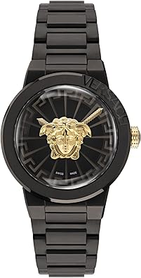 Versace Medusa Infinite Collection Luxury Womens Watch Timepiece with a Black Bracelet featuring a Black Case and Black Dial