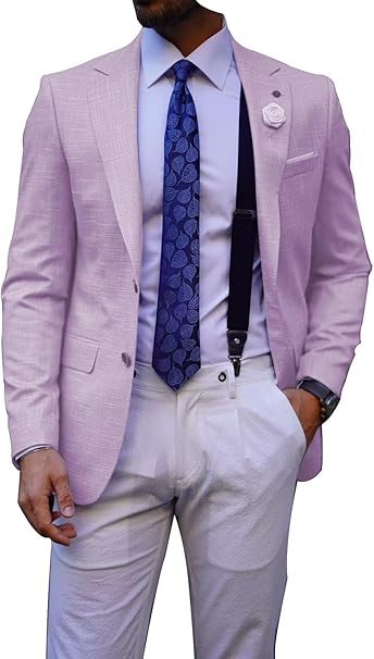 Wedding Linen Blazer Suit for Men Slim Fit Casual Lightweight Linen Sports Coat Notch Lapel 2 Button Jackets