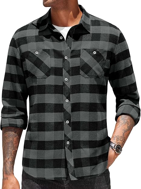 COOFANDY Men's Flannel Plaid Shirts Long Sleeve Casual Button Down Shirt with Pockets