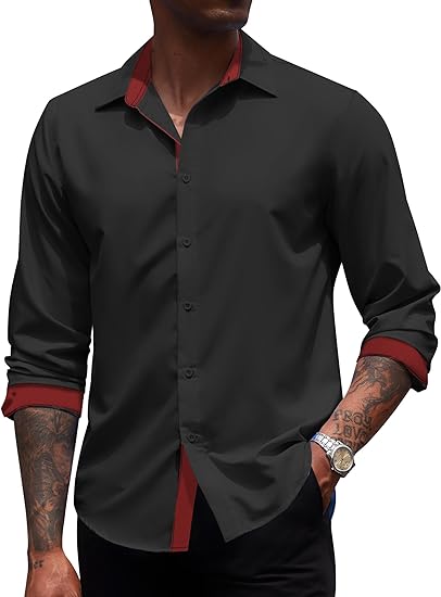 COOFANDY Men's Long Sleeve Wrinkle Free Dress Shirts 2024 Inner Contrast Business Casual Button Down Shirt
