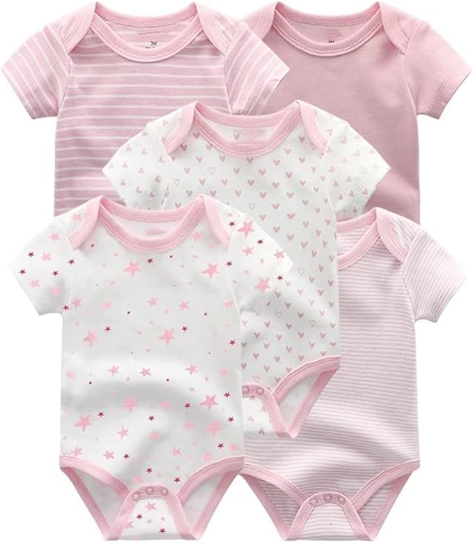Chamie Newborn Baby Bodysuit 5-Pack Short Sleeve Baby Clothes for Boys and Girls