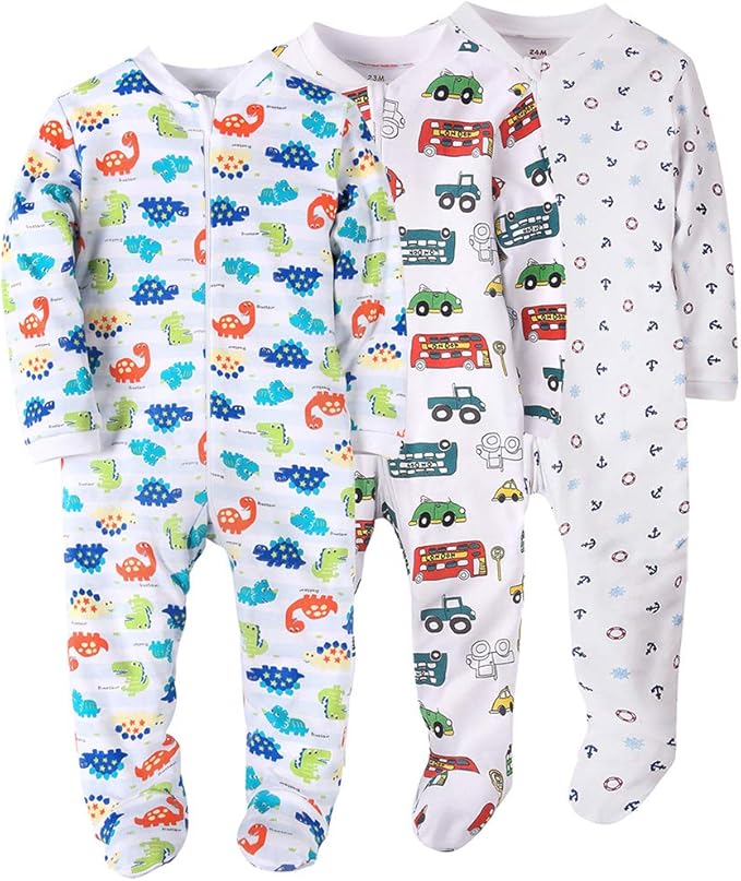 Baby Boys Footie Overall - Zip Front 100% Cotton Baby Rompers Playwear