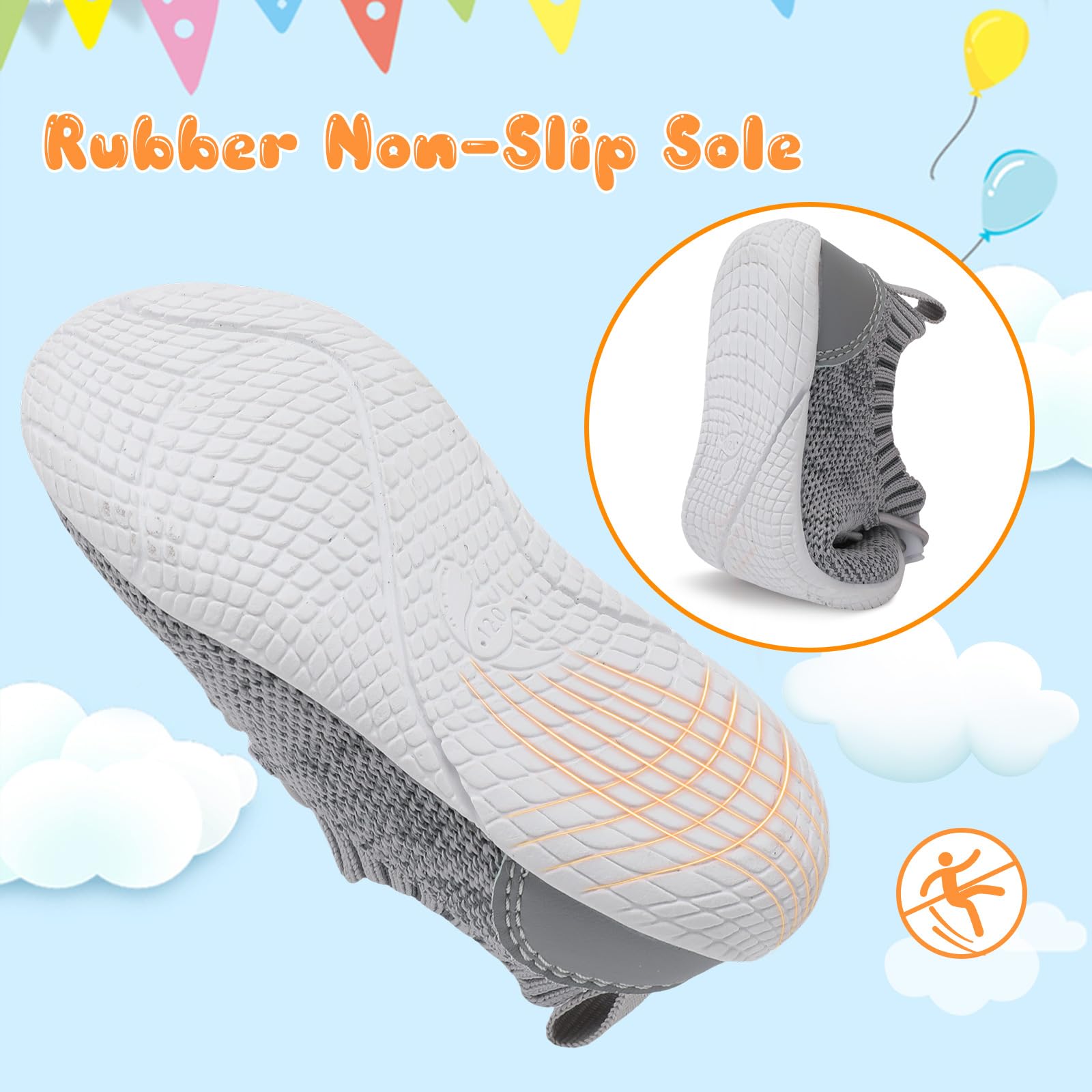 • Soft Knit Upper:Knitted Mesh Upper offers comfort and air permeability, has excellent breathability, moisture wicking function, and keep baby's feet dry and odorless. Super Soft, Breathable and Comfortable fit all the year.