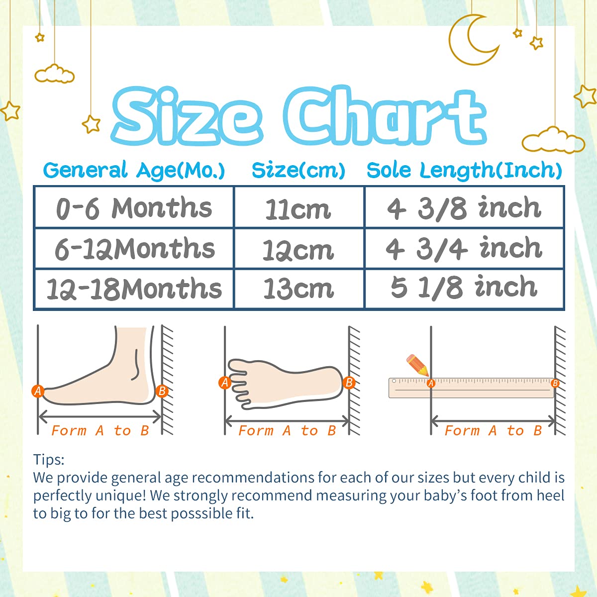 Details: Description Item Type: First Walkers Crib Canvas Sneaker Color: Black,White,Blue,Grey, Season: Spring,Summer,Autumn,Winter Gender: Newborn Infant Toddler Baby Package includes: 1 pair of shoes Size Reference: 1 inch=2.54 cm Note: Please choose the size by Sole Length, the age is just for reference. Note: 1.It is manual measurement, there may be 1-2 cm tolerance. Thanks for your. 2.The recommended age is just for your reference,Please measure your baby's foot length to choose the right size for your baby. 3.If you are satisfied with our products and service, we are appreciate for your 5 stars. Thanks in advance. 4.If you have any questions or feedback, pls don't hesitate to contact with us - we are 100% Guarantee to offer best service for all customers.