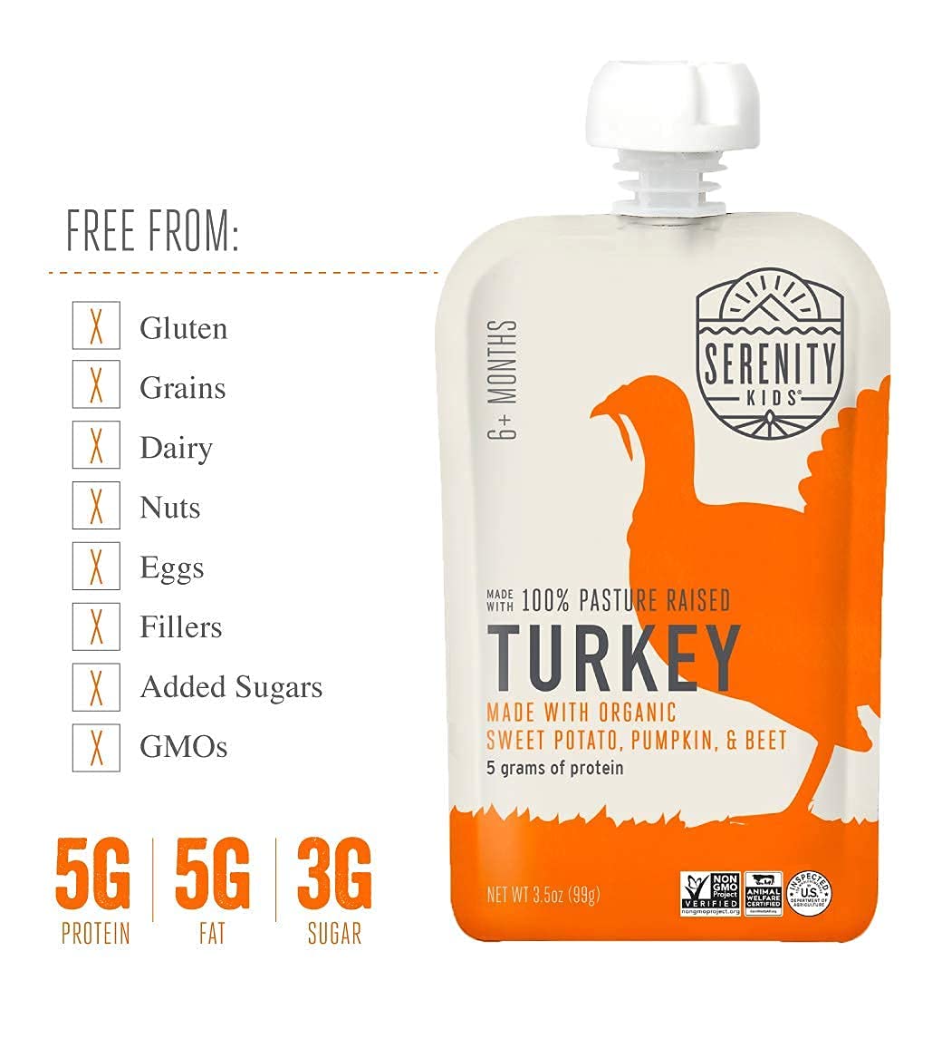 Serenity Kids 6+ Months Baby Food Pouches Puree Made With Ethically Sourced Meats & Organic Veggies | 3.5 Ounce BPA-Free Pouch | Meats + Herbs Variety Pack | 6 Count
