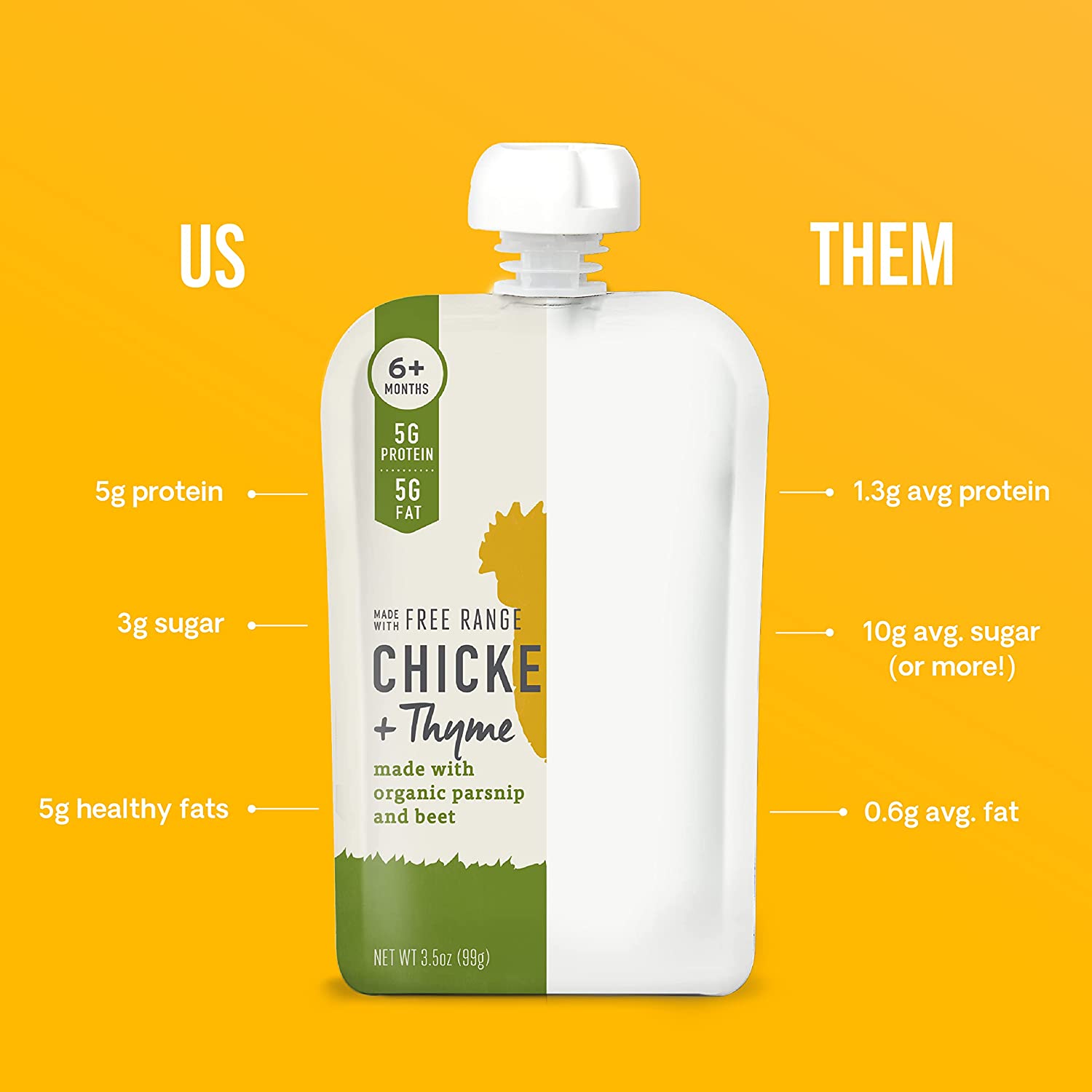 • NO SUGARY FRUITS: With no added sugars or sugary fruits, our veggie-first baby pouch meals are an ideal way to expand your baby’s palate!