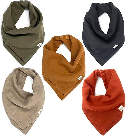 Kishu Baby Indi GOTS Organic Muslin Baby Bandana Bibs for Boys and Girls, 4-Way Reversible Drool Bib Set