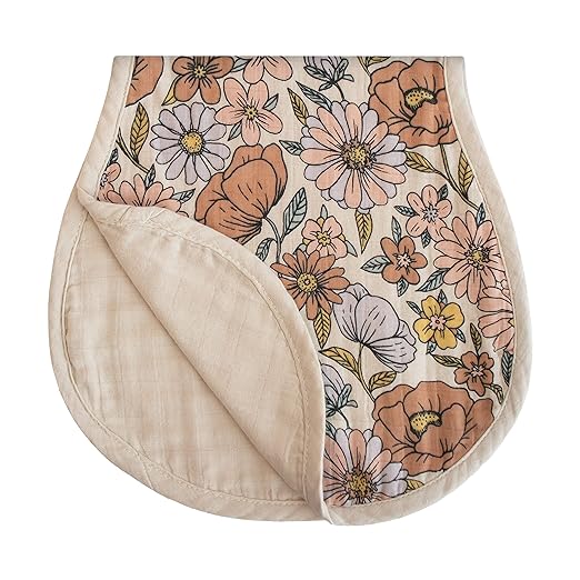mushie Muslin Baby Burp Cloths | 100% Organic Cotton, Set of 2 (Retro Flowers/Fog)
