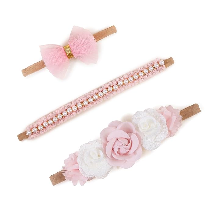 3pcs Hair Bows Baby Headbands for Girls, Flower Headband Elastic Nylon Hair Bands Set Bow Hair Accessories Gifts for Toddles Infant