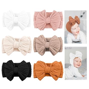 6pcs Baby Girl Bows Stretchy Soft Nylon Headbands Elastic Hair Bands with Bows For Newborn Baby Girls Infant Toddlers Kids
