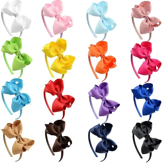DED 16 Pack Hair Bows Plastic Hair Headband Grosgrain Ribbon Headbands Hair Hoops Hair Accessories for Baby Girls Kid