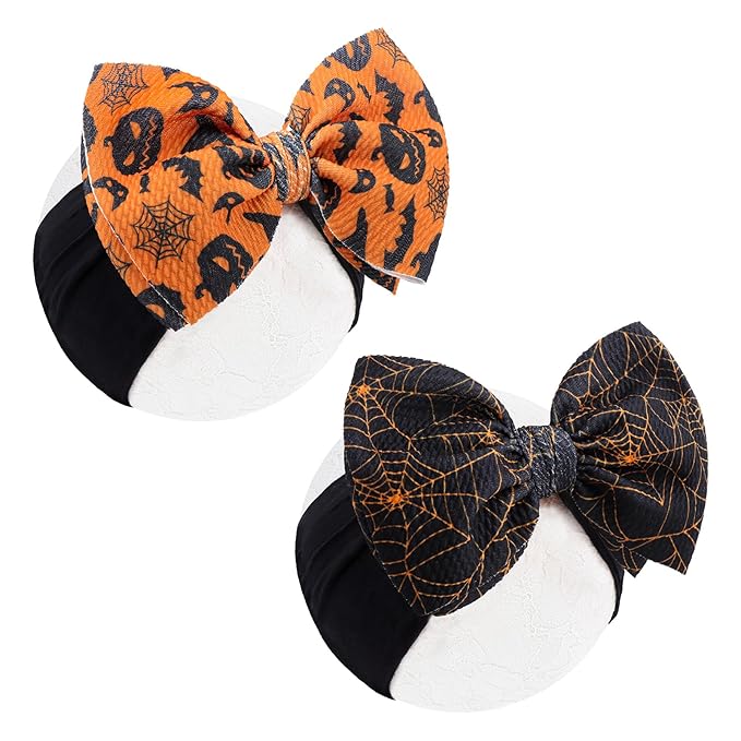 Halloween Baby Girl Bows Elastic Nylon Halloween Hairbands Hair Accessories Headbands with Bows for Newborn 2 PCS