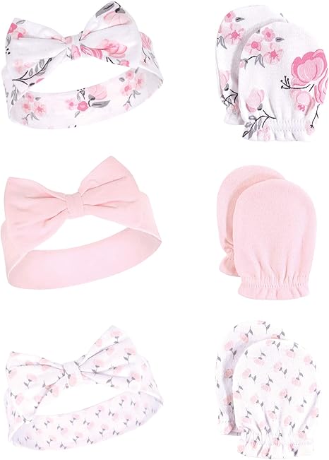 Hudson Baby Baby Girls' Cotton Headband and Scratch Mitten Set