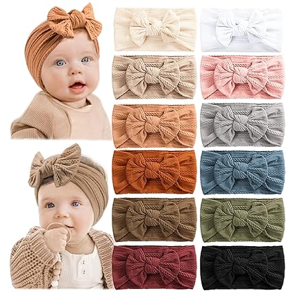 Prohouse 12 PCS Baby Headbands Handmade Super Stretchy Soft Nylon Hairbands Hair Bows Hair Accessories for Baby Girls Newborn Infant Toddlers Kids(Clay)