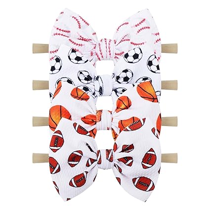 YanJie Baby Girls Hairband - Set of 4 pcs Football, Basketball, Soccer, Rugby Nylon Baby Headbands for 0-6 Months Newborn Infant Toddler - 4 Count Pack