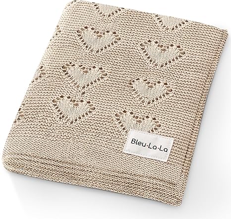 100% Luxury Cotton Heart Swaddle Knit Baby Blanket for Girls and Boys - Soft Warm Cozy Swaddling Receiving Stroller Crib Blanket for Newborns Infants & Toddlers (Oatmeal, 0-2 Years)