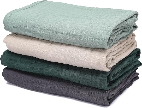 Baby Muslin Swaddle Blankets for Boys and Girls, 4-Pack Breathable and Skin-Friendly, Wrap Soft Silky Cotton Muslin Swaddle Blankets/Atrovirens/Green/Apricot White/Grey‰Û_