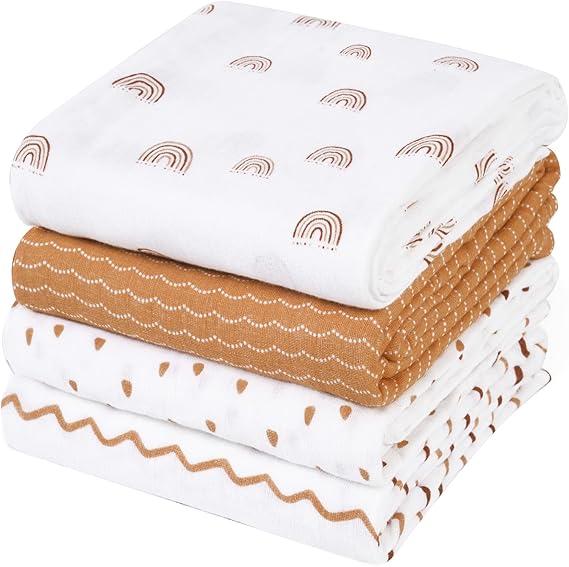 david's kids 4 Pack Baby Muslin Swaddle Blankets, 100% Cotton Swaddling Blankets Wrap for Boys Girls Neutral, Ultra Soft Breathable Receiving Blanket, New Born Essentials, Rainbow/Wave