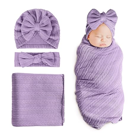 DRESHOW BQUBO Newborn Receiving Blanket Toddler Warm for Girls with Bow Hat and Bow Headband Shower Gift