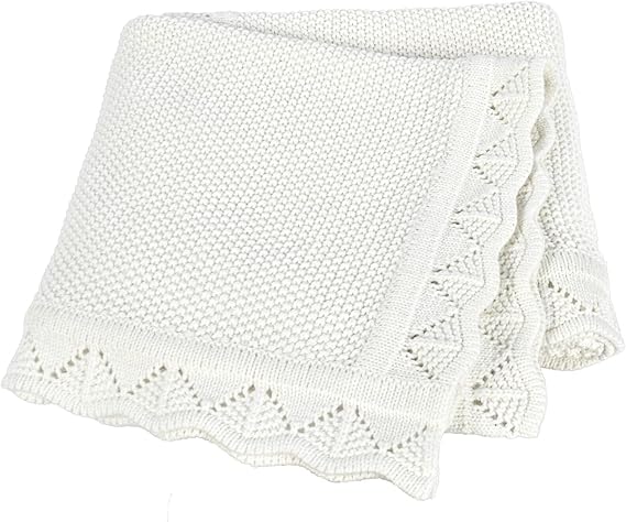 Knitted Baby Blanket for Boys & Girls, 100% Cotton Receiving Swaddle Crib & Stroller Blanket for Newborns, Infants, Toddlers, Milk White, 40 x 31 Inches