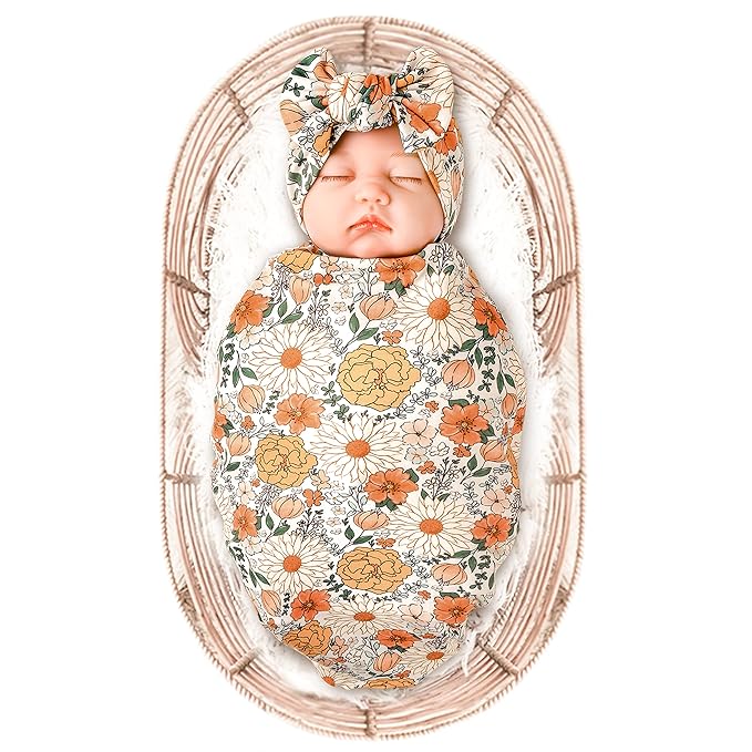 Konssy Baby Girl Newborn Receiving Blanket with Headband Set Baby Swaddle Nursery Swaddle Wrap