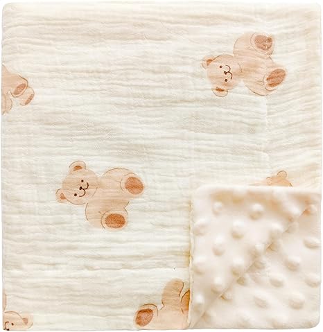 Muslin Baby Blanket Soft Double Layer 100% Muslim Cotton Plush Fluffy Dotted Fleece Back Swaddle Blankets Neutral Receiving Bassinet Bed Nursery Quilt for Babies Toddler Girls Boys 30 x 40 Inches