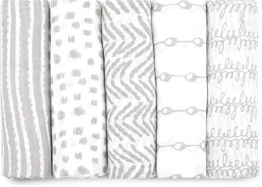 Muslin Swaddle Blankets for Newborn, 5 Pack Neutral Receiving Blanket, Muslin Blanket Swaddles Wrap for Boys and Girls, Baby Essentials, 47x47 Inches Large Size, 100% Cotton, Grey