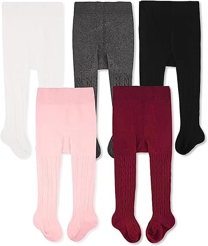CozyWay Girls Tights Cotton Cable Knit Footed Pantyhose Baby Toddler Leggings - Pack of 5