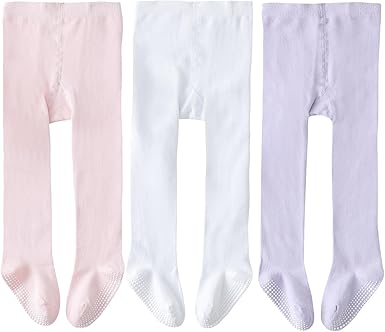EPEIUS Baby Tights Baby Girls Non-Slip Plain/Ribbed Leggings Seamless Cotton Stockings Pantyhose Newborn Infant Toddler