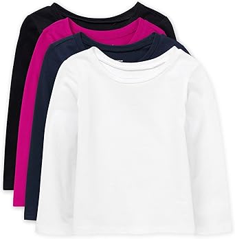 The Children's Place Baby Girl's and Toddler Basic Long Sleeve Layering Tees, Black/Fuschia/Black/White 4-Pack