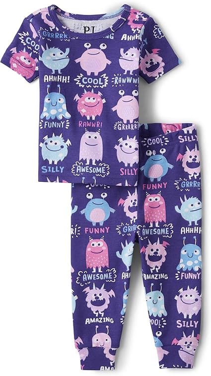 The Children's Place Baby Girls' and Toddler Short Sleeve Top and Pants Snug Fit 100% Cotton 2 Piece Pajama Set
