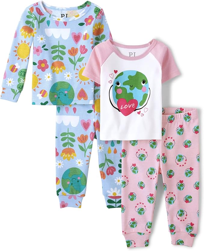 The Children's Place Baby Girls' and Toddler Sleeve Top and Shorts 100% Cotton 2 Piece Pajama Sets