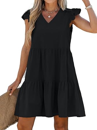 CUPSHE Women Crew Neck Cap Sleeve Ruffle Mini Babydoll Dress Back to School Cute Dresses