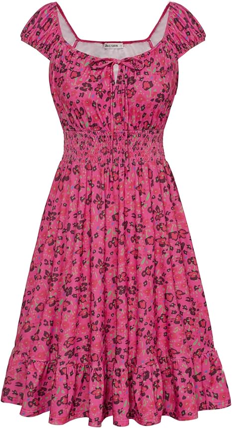 GRACE KARIN Women's Floral Dress 2024 Summer Cap Sleeve Smocked Flowy A Line Short Dress Boho Flared Swing Mini Dresses