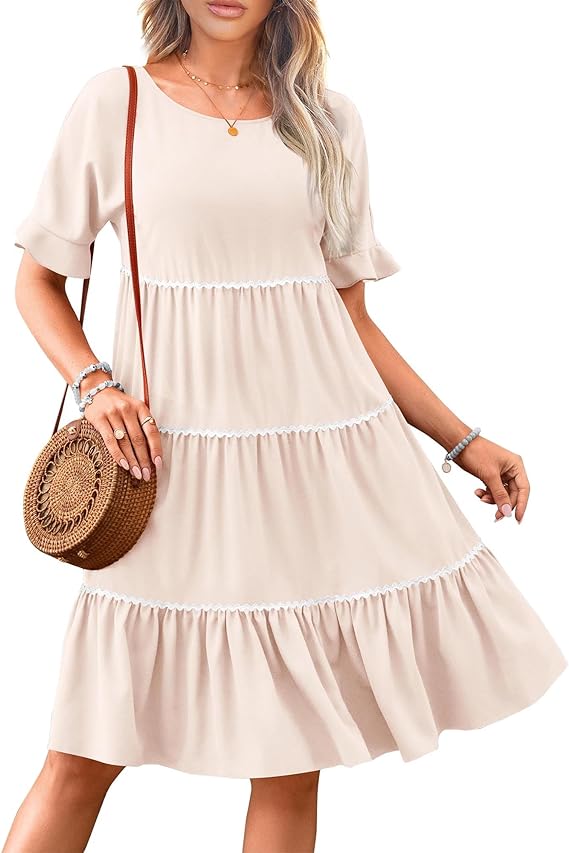 KIRUNDO Women Summer Dresses 2024 Casual Ruffle Short Sleeve Loose Flowy Swing Tunic Beach Vacation Mini Babydoll Dress