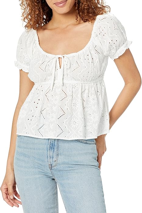 Lucky Brand Women's Tie Front Schiffley Babydoll Top