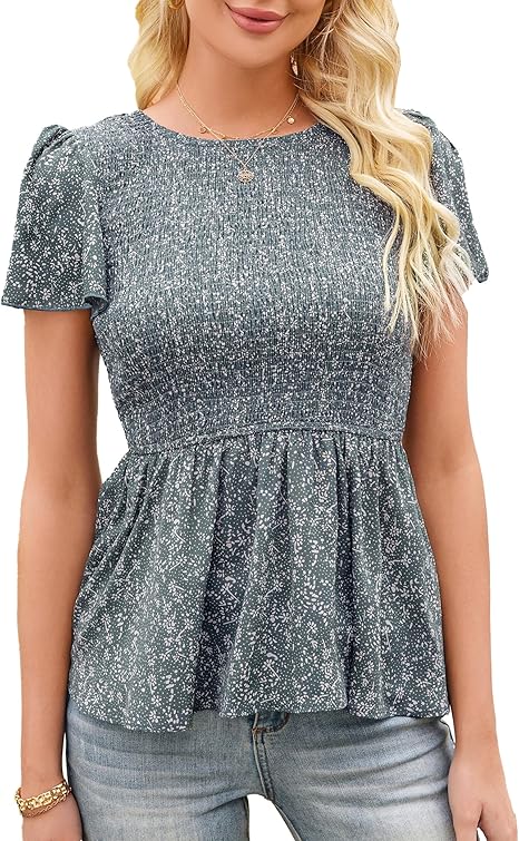 SDEER Women's Floral Print Peplum Top Smock Ruffle Short Sleeve Babydoll Flowy Blouse Tops