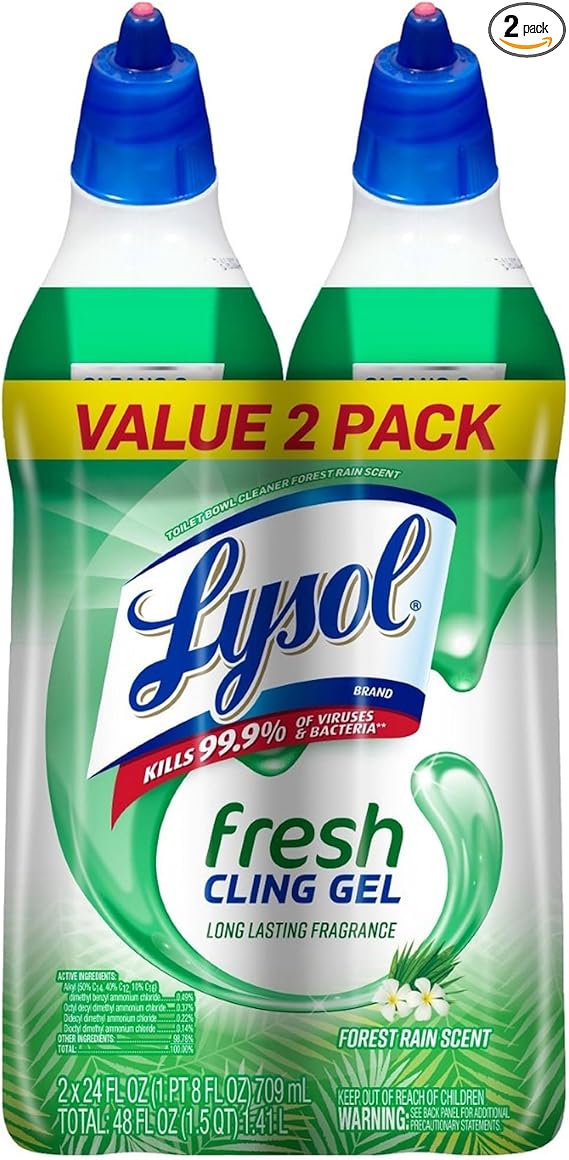 Lysol Toilet Bowl Cleaner Gel, For Cleaning and Disinfecting, Stain Removal, Forest Rain Scent, 24oz (Pack of 2)